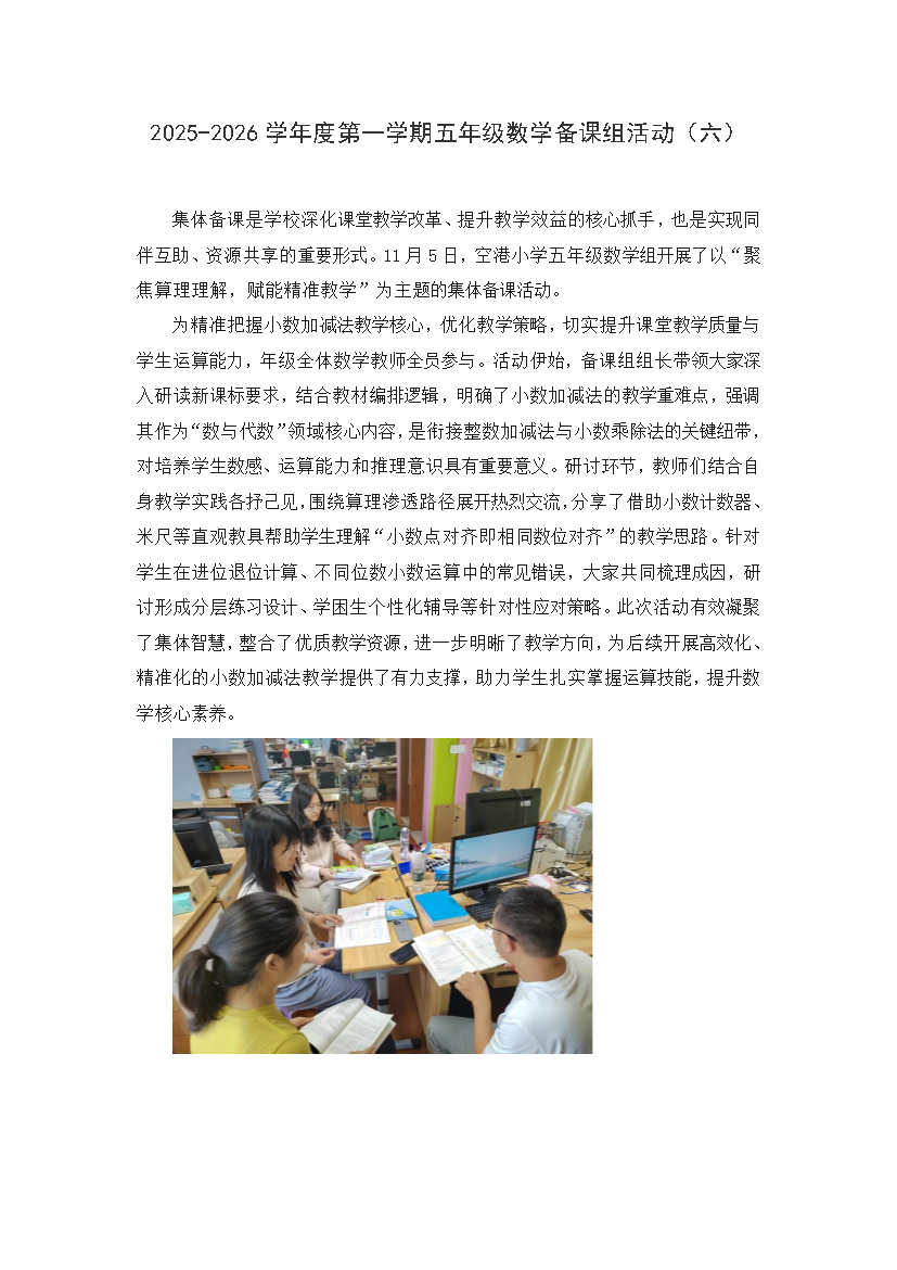 空港小学2025-2026学年度第一学期五年级数学备课组活动(六)